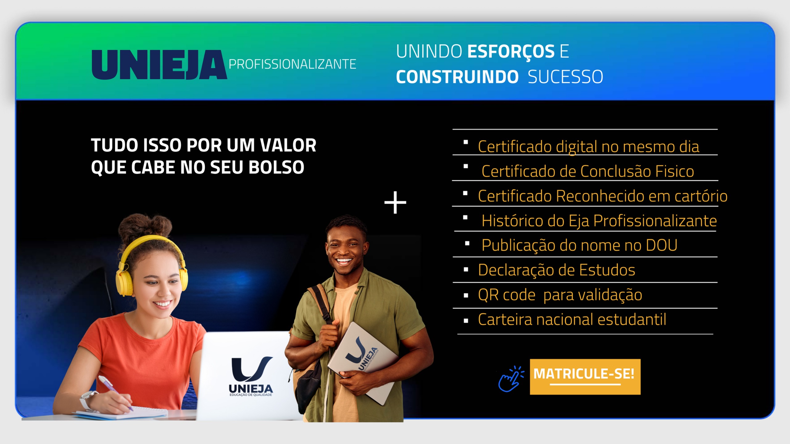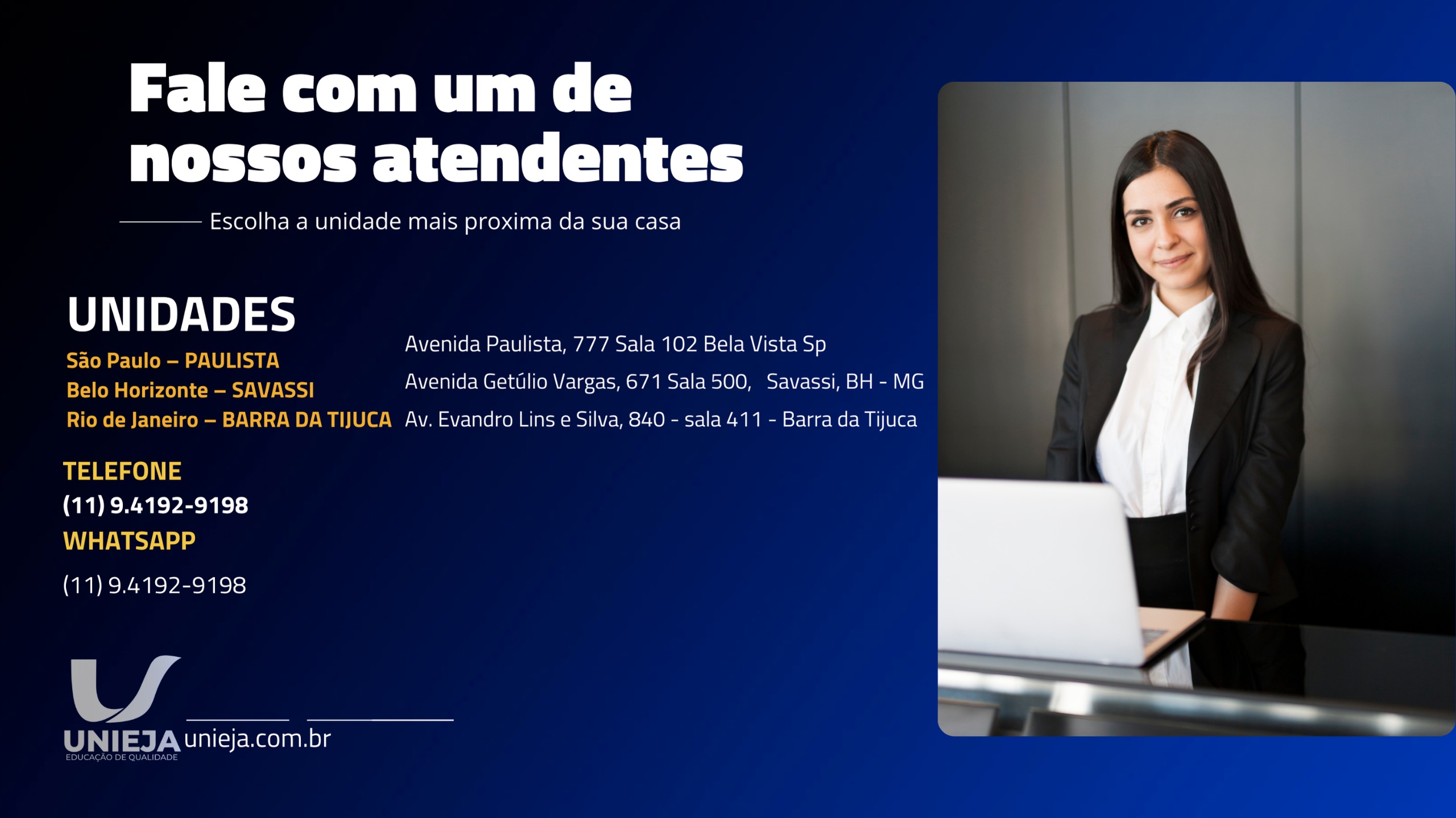 Escola UNIEJA – Educação de Qualidade – AVENIDA PAULISTA, Nº 777 – SALA 102-BELA VISTA – SP CEP: 01311-100 Fone (11) 94192-9198